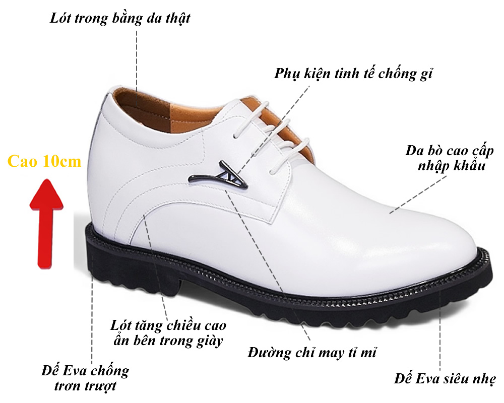 Giày cao 10cm màu trắng đế eva siêu nhẹ