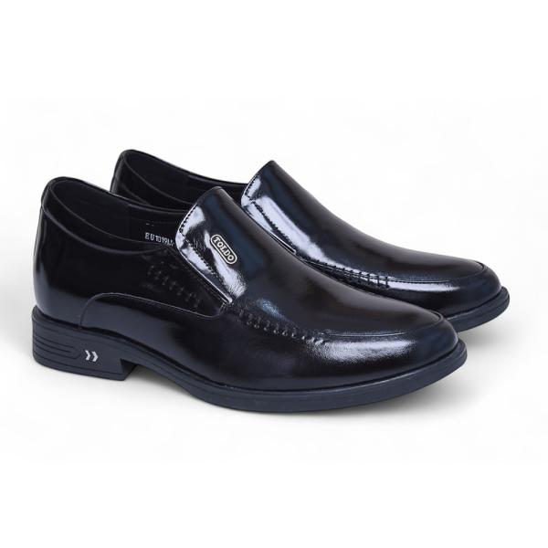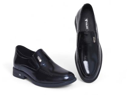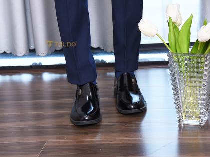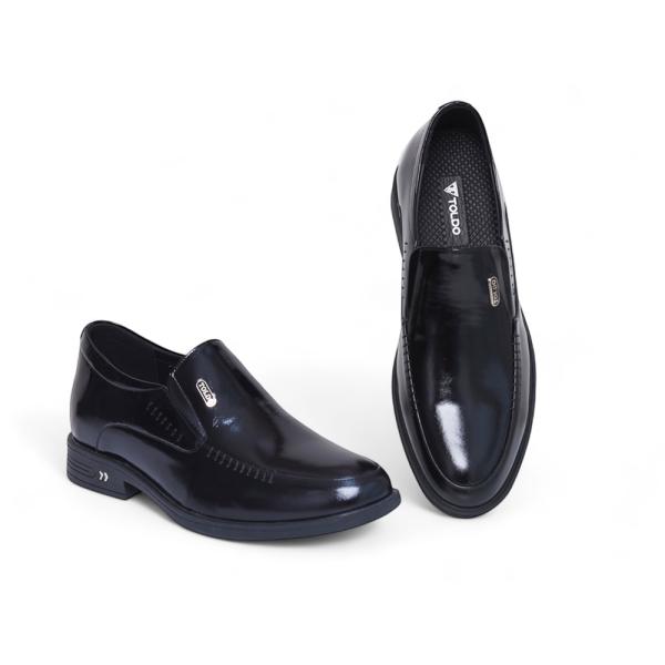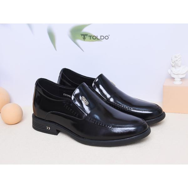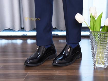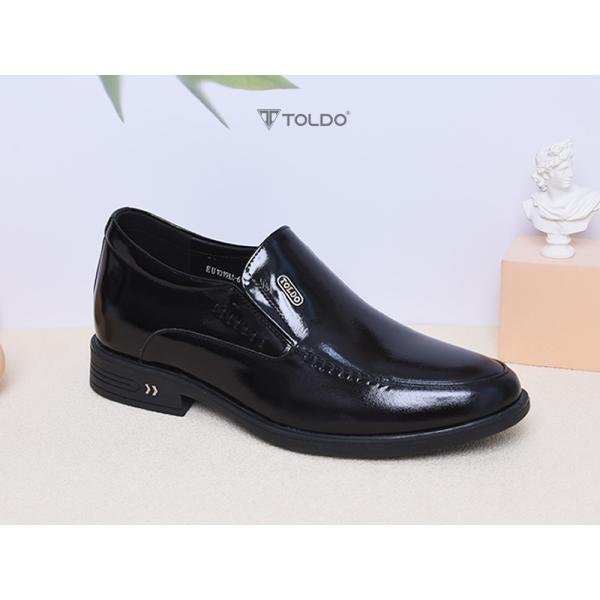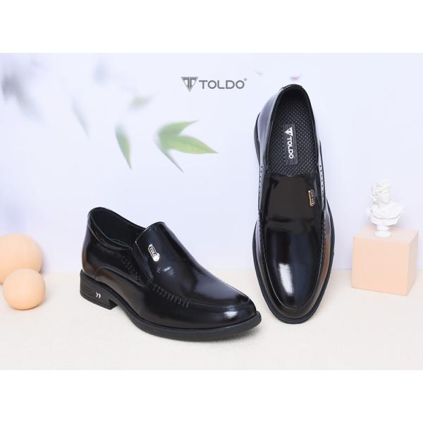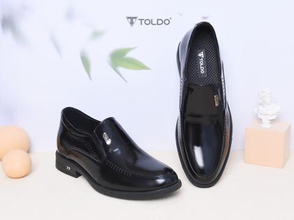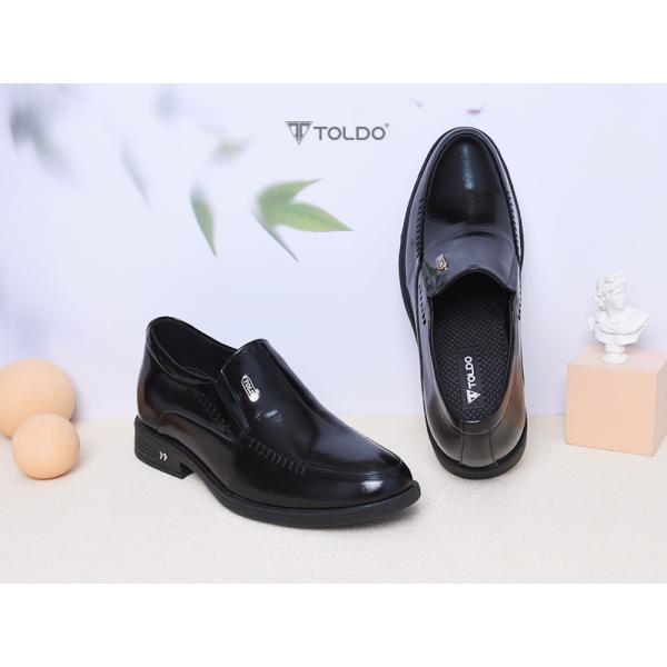 Mẫu giày tăng 7cm từ da bò thật với bề mặt da bóng lịch lãm, tạo nên vẻ ngoài sang trọng. Đường khâu hai bên tinh tế, đế siêu nhẹ giúp di chuyển thoải mái. Giày khâu chắc chắn, lót trong bằng da, logo Toldo chất liệu bằng đồng cao cấp chống gỉ. Phù hợp đi làm, dự tiệc, gặp gỡ khách hàng.