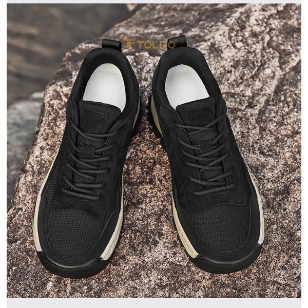 Mẫu giày thể thao thiết kế khỏe khoắn, đế cao su đúc nâng chiều cao lên đến 7cm, lớp lưới thoáng khí giúp thoải mái cả ngày dài. Phần đế màu be nổi bật, tăng tính thời trang. Phù hợp đi làm, dạo phố hay du lịch, mang lại sự tự tin và năng động cho phái mạnh.