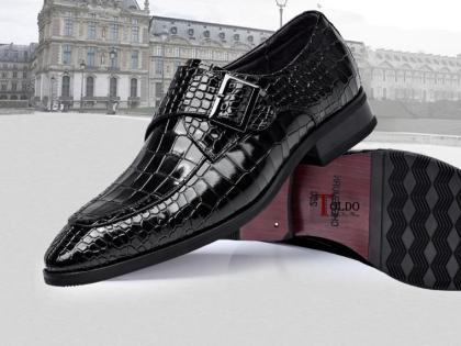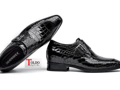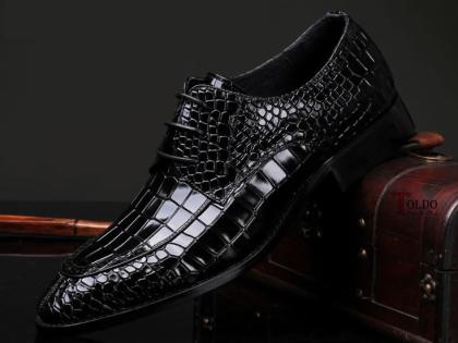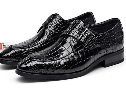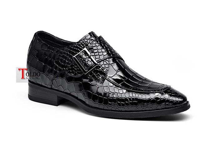 Giày cao da bóng dập vân cá sấu 1