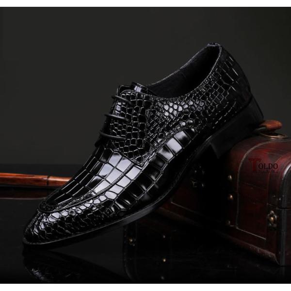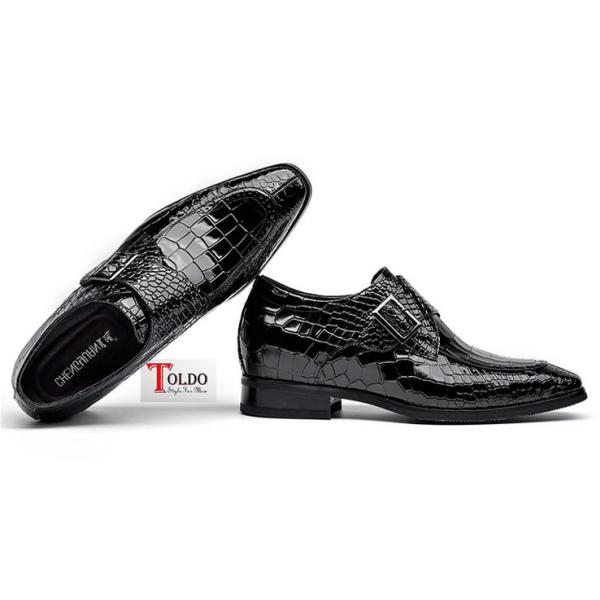 Giày cao da bóng dập vân cá sấu 3