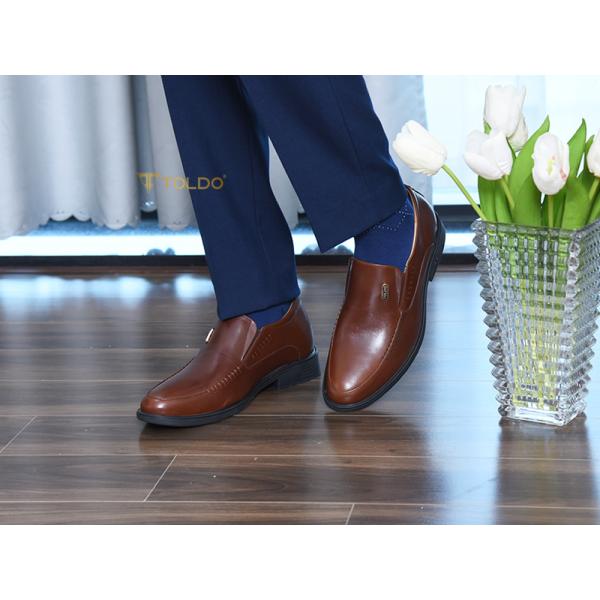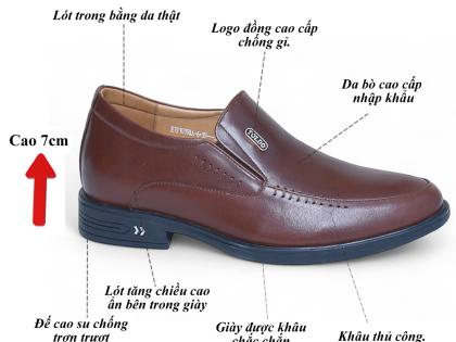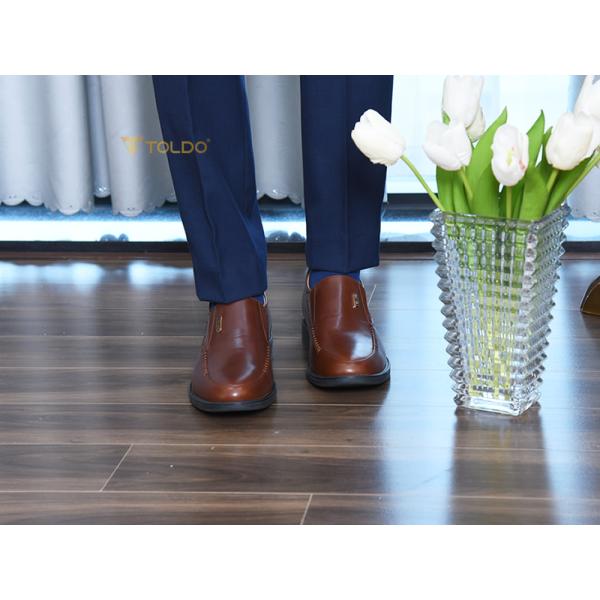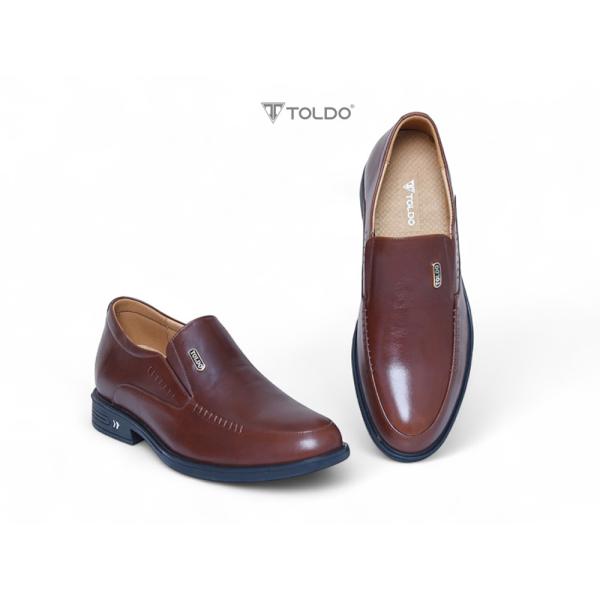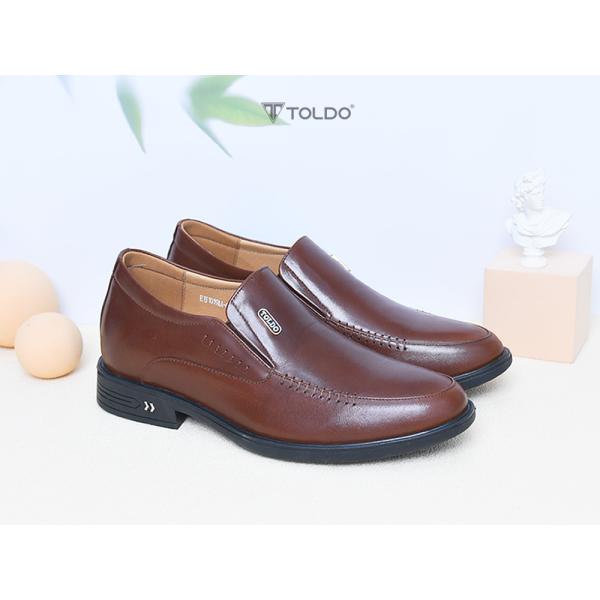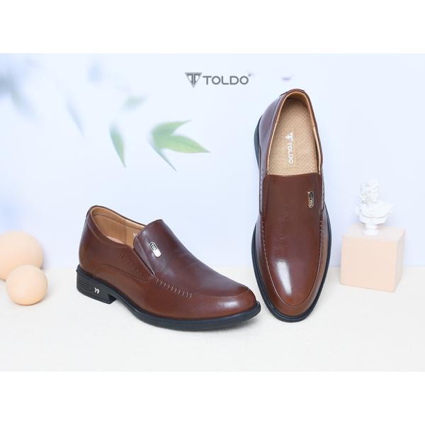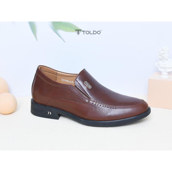 Giày nam Toldo cao 7cm tăng chiều cao tinh tế. Chất liệu da bò sáp cao cấp, bền đẹp theo thời gian. Đường khâu tỉ mỉ hai bên tạo điểm nhấn sang trọng. Phụ kiện đồng chống gỉ mang thương hiệu Toldo đẳng cấp. Giày siêu nhẹ, mang lại cảm giác thoải mái tối đa. Phù hợp mọi dịp: đi làm, đi chơi, hay dự sự kiện, giúp bạn luôn tự tin và phong độ.