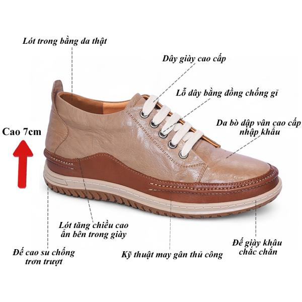 Giày cao 7cm thể thao đế khâu da thật