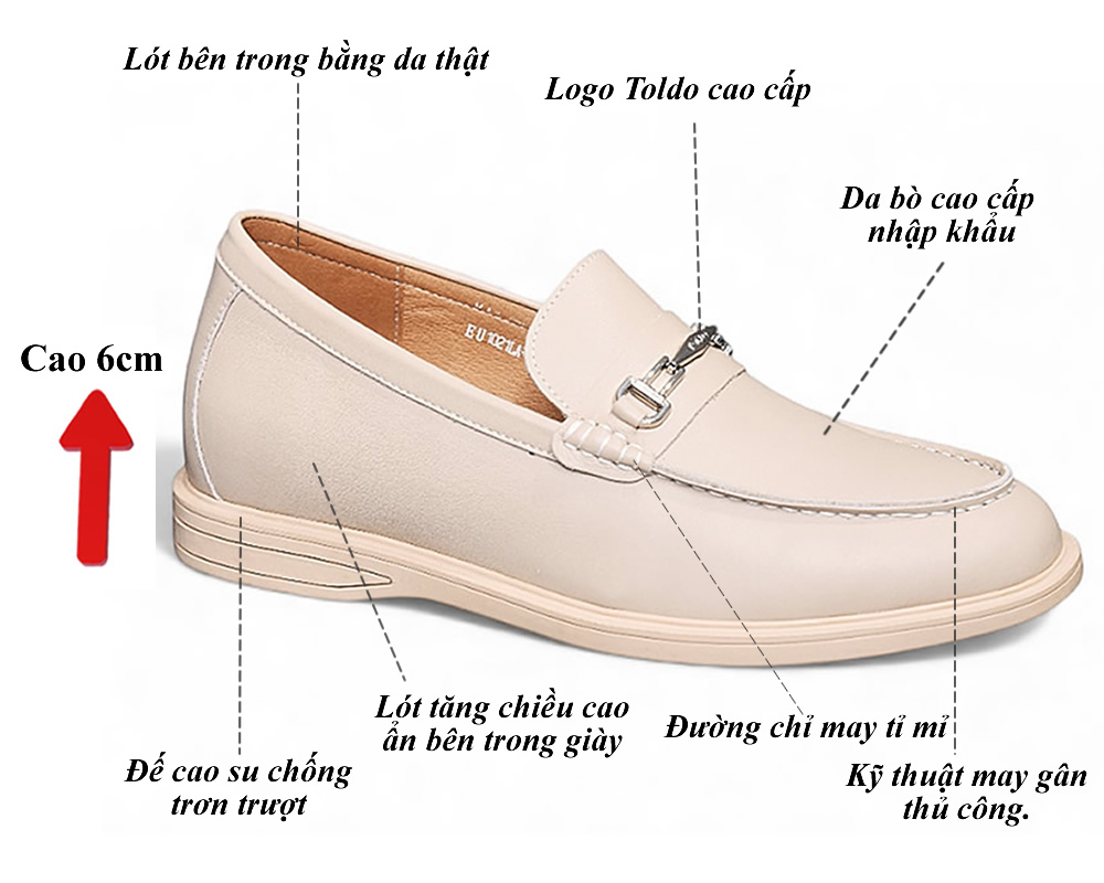 Giày lười cao 6cm da thật 6