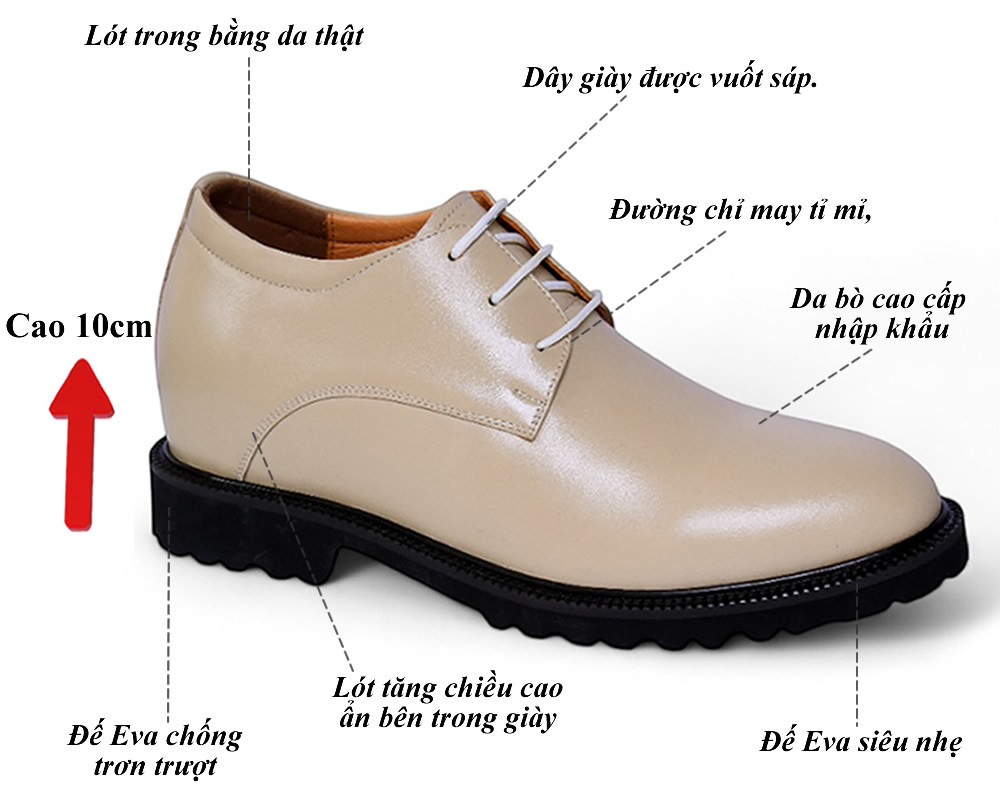 Giày được thiết kế thông minh, nâng chiều cao 5–10cm mà vẫn giữ dáng tự nhiên, thoải mái.