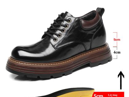 Mẫu giày cao cấp giúp tăng 9cm chiều cao, thiết kế từ da bò thật mềm mại, bền bỉ, mang lại sự sang trọng và lịch lãm. Đế giày chắc chắn, êm ái, giúp di chuyển dễ dàng, tôn dáng và tăng sự tự tin cho phái mạnh.